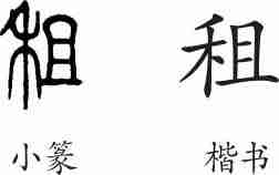 “租”是形声字。小篆从禾,且声。隶变后楷书写作“租”。