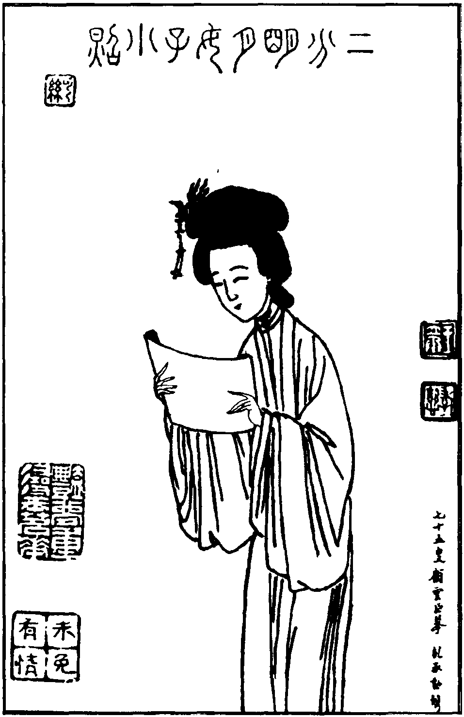 【滚绣球】 一曲,就是陈素素幽隐心态的坦露。真娘是唐代苏州名妓,艳声才名冠绝一时,生前曾和许多著名文士来往,死后葬在虎丘剑池之西,其墓侧历代著名文士多有题咏。素素自恃美貌多才,是和真娘一样的风尘才女,追慕昔日真娘芳名,自然产生同病相怜之情。此曲首先自述身世与处境,对自己的命运顿生感叹。冶容迎人、倚门献笑的青楼生涯,年轻时固然一时春风得意,但随着岁月流逝,人老珠黄,终有车马冷落、花柳凋残之叹,难逃寂寥凄惨的下场。因此,她要借凭吊真娘墓,对古代名姬倾诉心中的感慨和哀愁。