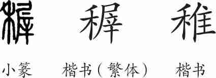 “稚”是形声字,小篆从禾,声。隶变后楷书写作“稺”。异体作“稚”,从隹声。如今规范化,以“稚”为正体。