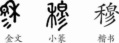 “穆”是象形字。金文像一棵向下弯垂的禾,禾穗饱满,已经成熟。小篆发生了伪变。隶变后楷书写作“穆”。