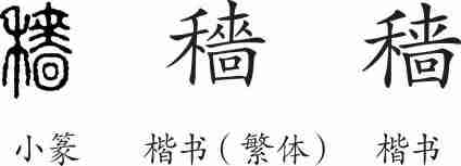 “穑”是会意兼形声字。小篆从禾从嗇(仓库)会意,嗇兼表声。隶变后楷书写作“穡”。汉字简化后写作“穑”。