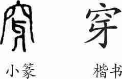 “穿”是会意字。小篆从牙在穴中,会穿通之意。隶变后楷书写作“穿”。