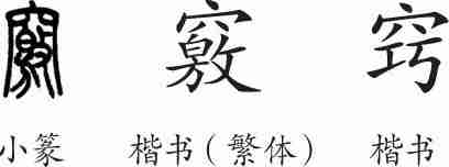 “窍”是形声字。小篆从穴(表示孔洞),敫声。隶变后楷书写作“竅”。汉字简化后写作“窍”。