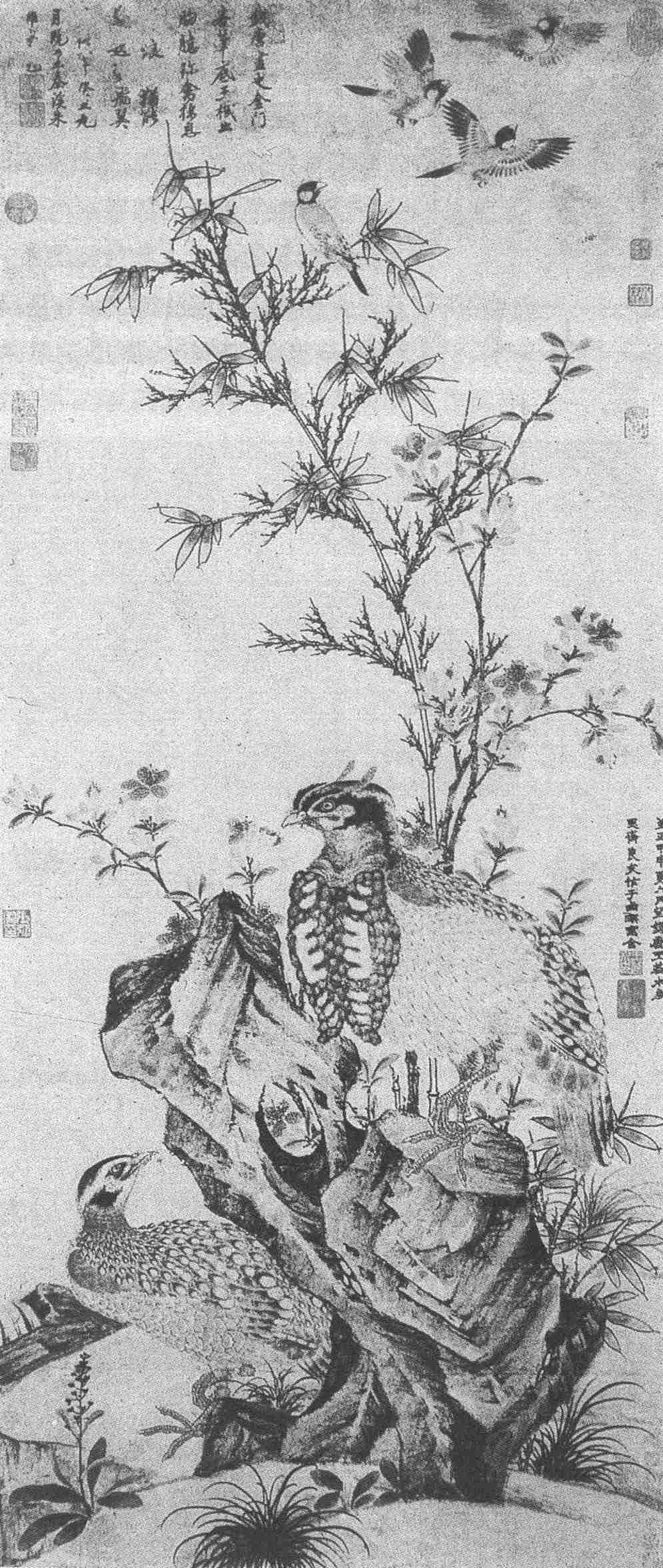 竹石集禽图