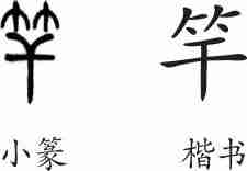 “竿”是形声兼会意字。小篆从竹,干声,干兼表杆之意。隶变后楷书写作“竿”。