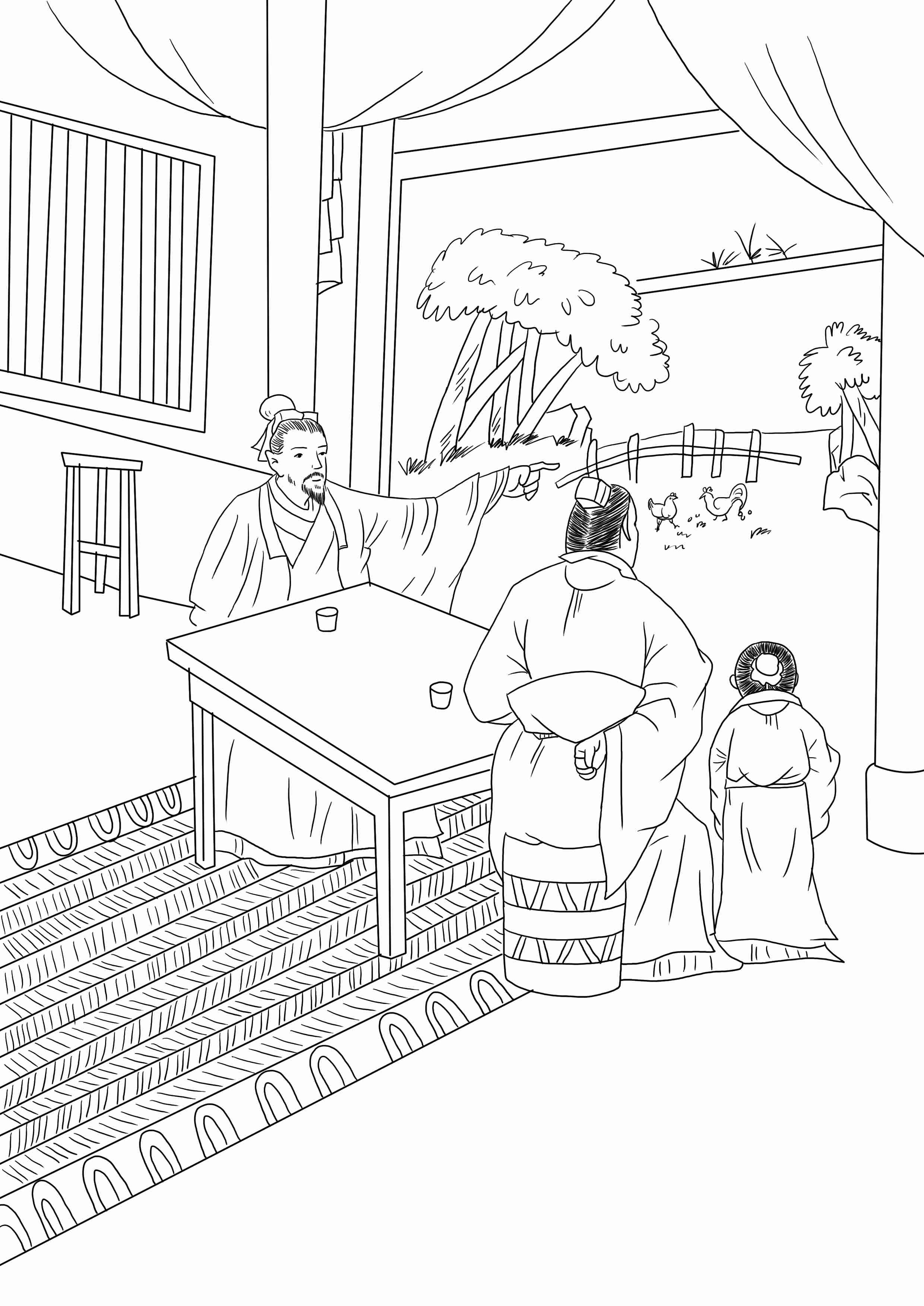 有一家人,请先生教儿子读书,饮食上极其简单。一天和主人坐在一起,先生指着篱笆边找食的鸡对主人说:“鸡有几德?”主人说:“五德。”先生说:“以我的看法是有七德。”主人问:“为何多了二德?”先生答:“我吃得,你又舍不得。”