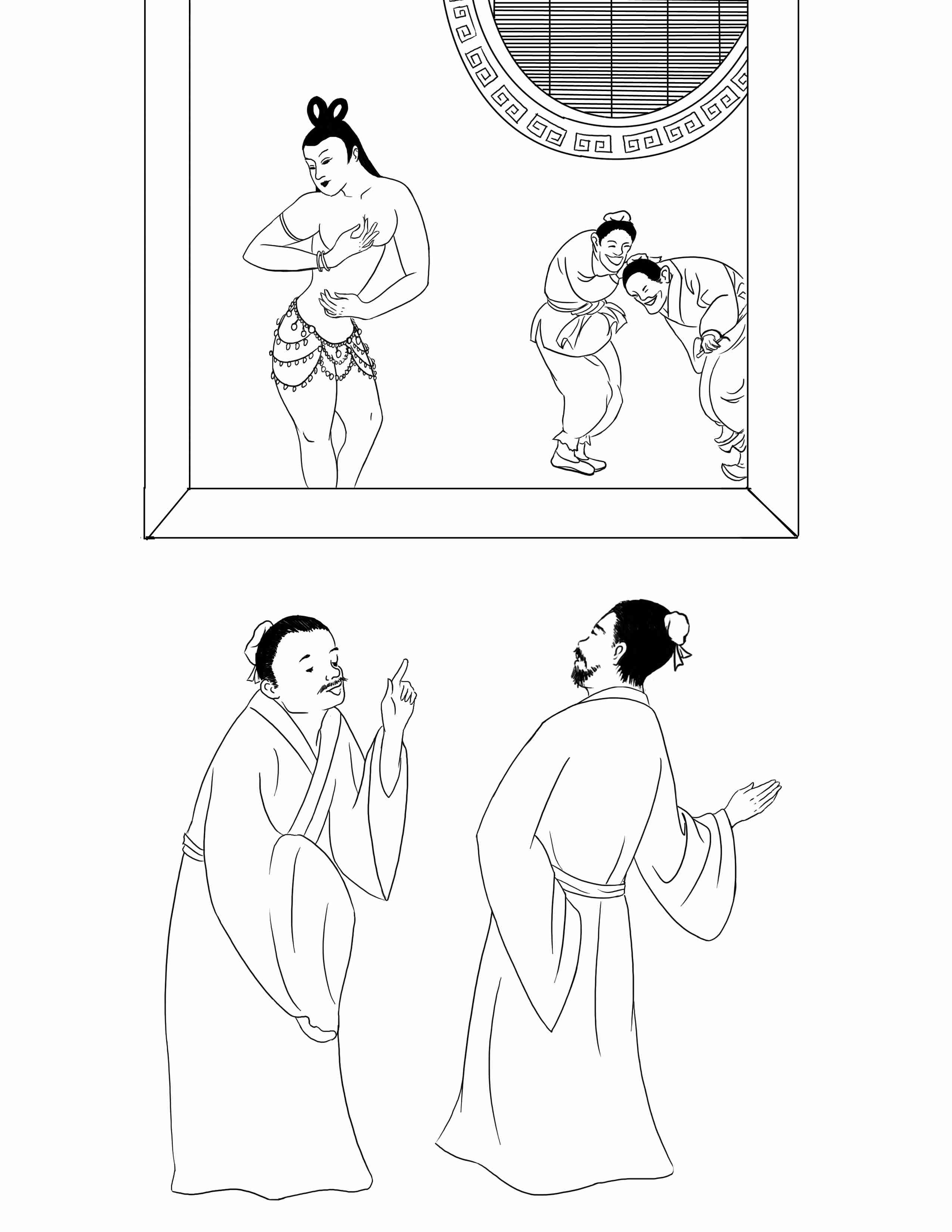 一个人看到一本春宫画,说:“这不是春画,是夏画,不然为什么是赤身露体的?”又一人说:“也不是夏画,是冬画。”问:“何以见得?”答:“你没看见每幅画上每个胡子在那里呵冻笔。”