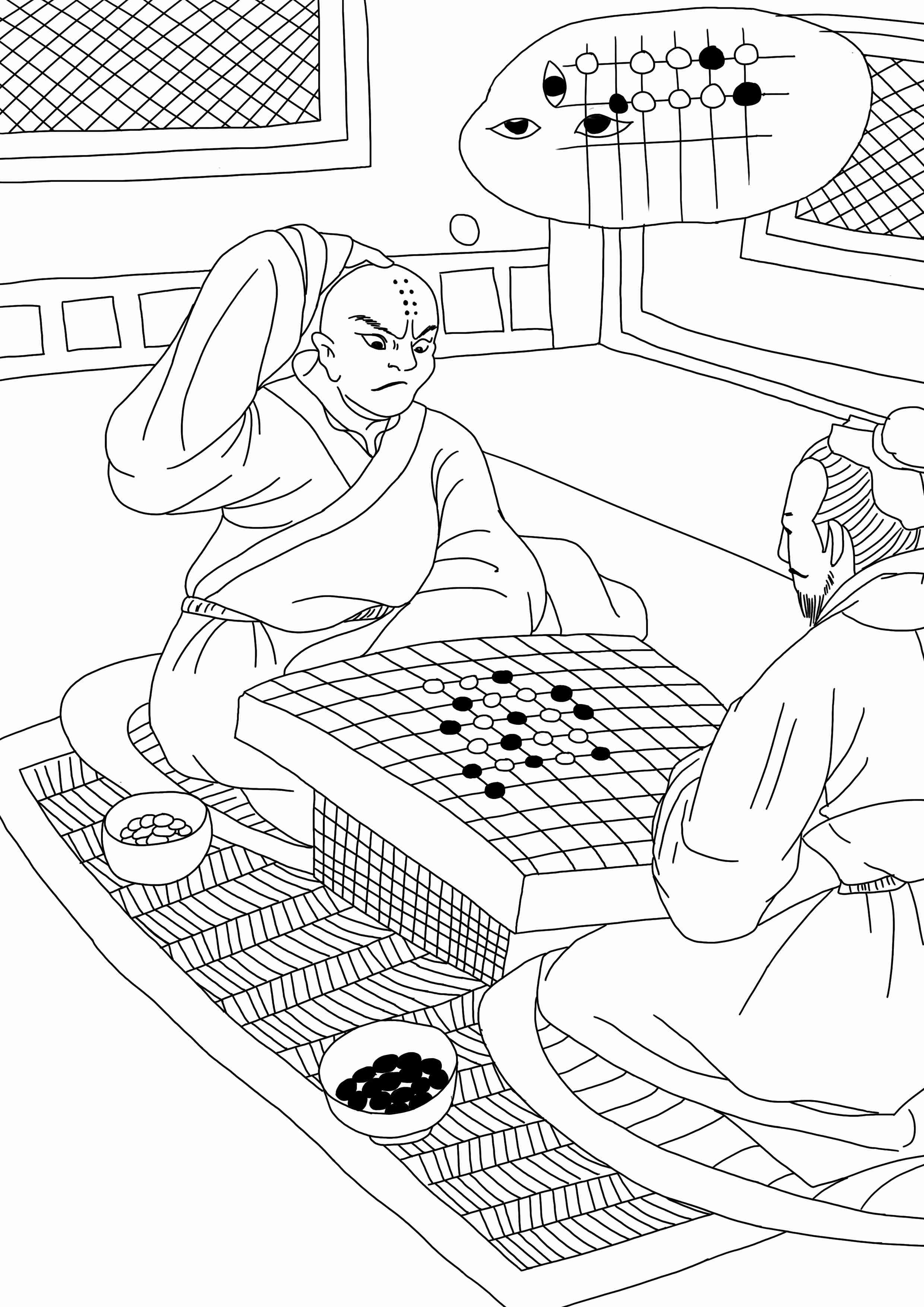 一个和尚与一人下围棋,因夺角不能成眼,烦躁起来,光头发痒,于是手摸头顶说:“在这个地方,有一个眼就好了。”