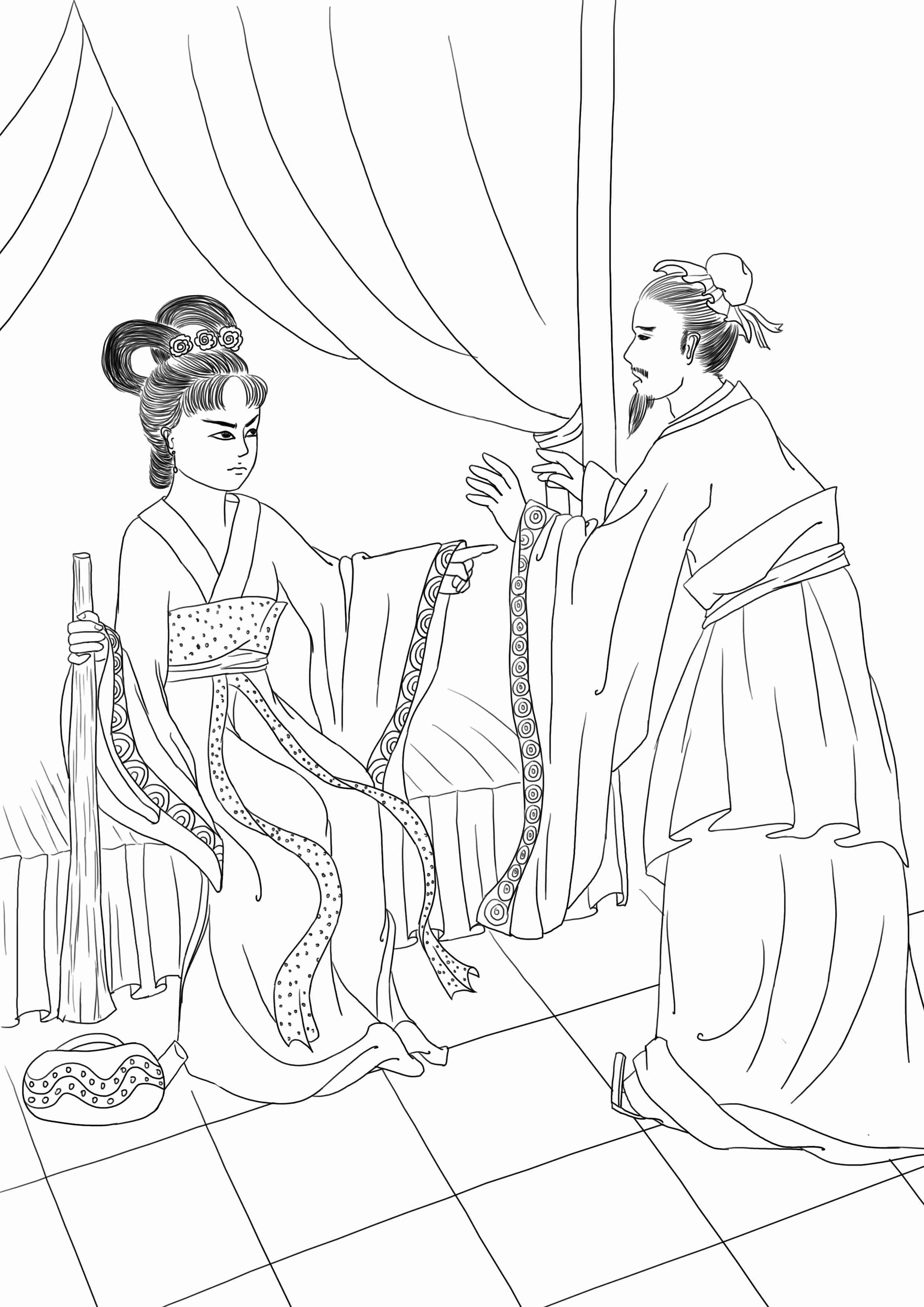 有一人的老婆爱吃醋,丈夫买一女仆都不能容忍,马上弄到其他地方去卖了。他就把这事告诉一个朋友。朋友说:“我家臭婆娘更厉害,岂止女仆,就是英俊点的男仆都不准请来,马上就要赶走。”旁边一个男人说:“你们两位老兄的婆娘还算贤慧,只看我房内,不但不准有婢仆,连夜壶(便壶)都不许买,私下买了,她必然拿槌子敲碎才甘心。”