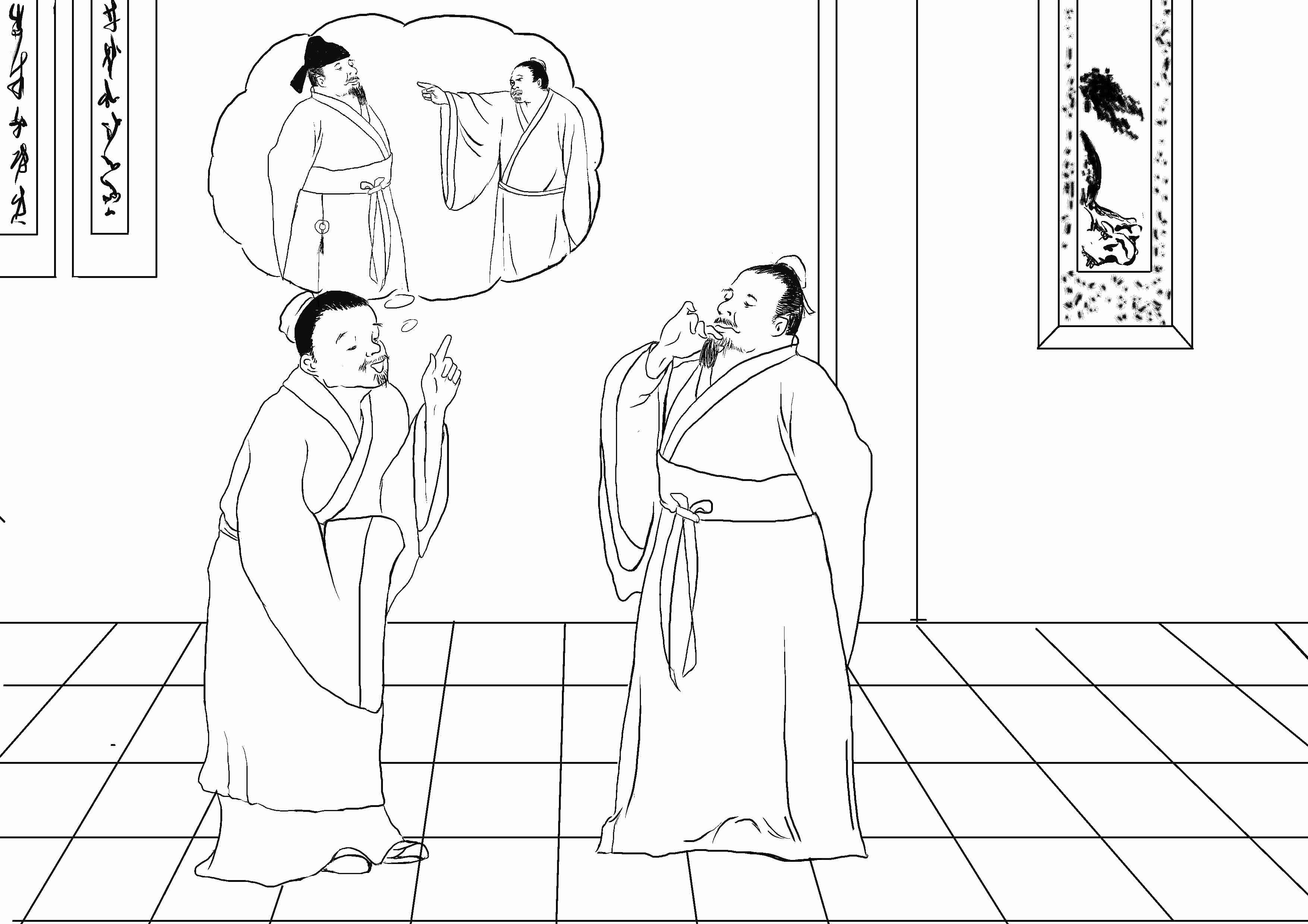 一人对胡子曰:“我昨晚梦见你做了官,旗伞执事,吆喝齐声,好不威阔。”胡子大喜。其人又云:“我梦里骂了你,你就呼皂隶来打我,被我将你胡须一把揪住。”胡子云:“骂了官长,自然该打。后来毕竟如何?”其人曰:“也就醒了,醒来一只手还揪住一把卵毛,紧紧不放。”