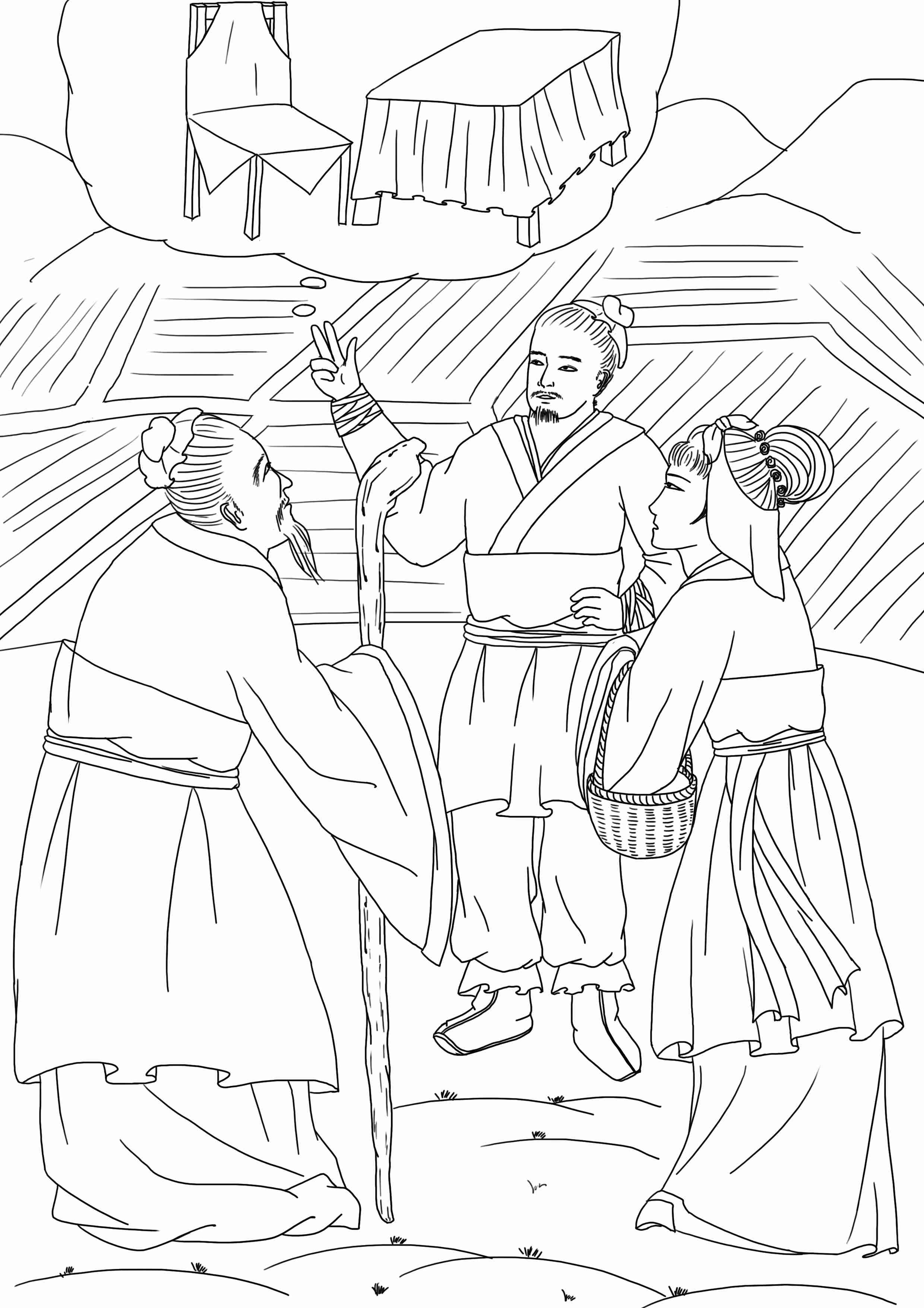 乡民入城赴席,见椅桌多悬桌围坐褥。归谓人曰:“莫说城里人受用,连城里的椅桌都是极受用的。”人问其故,答曰:“桌子穿了绣花裙,椅子都是穿销金背心的。”