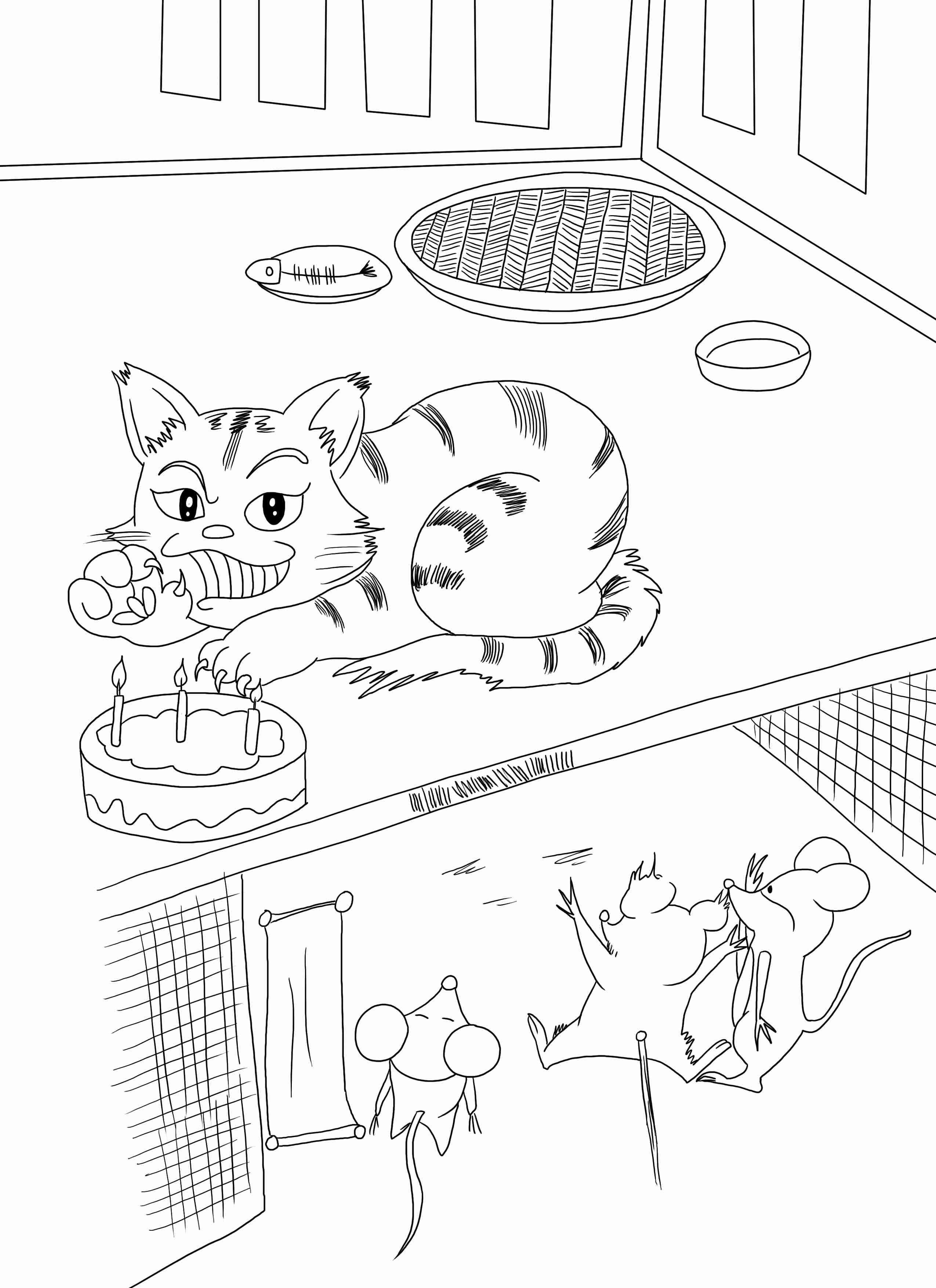 猫与老鼠庆祝生日,安然地坐在鼠洞边,老鼠不敢出来。老鼠忽然在内打一喷嚏,猫祝贺道:“寿年千岁!”众老鼠说:“他这样恭敬,不如出去见一面。”一鼠说:“他哪里是真心来祝寿,骗我出去,正要狠狠的大嚼一顿。”