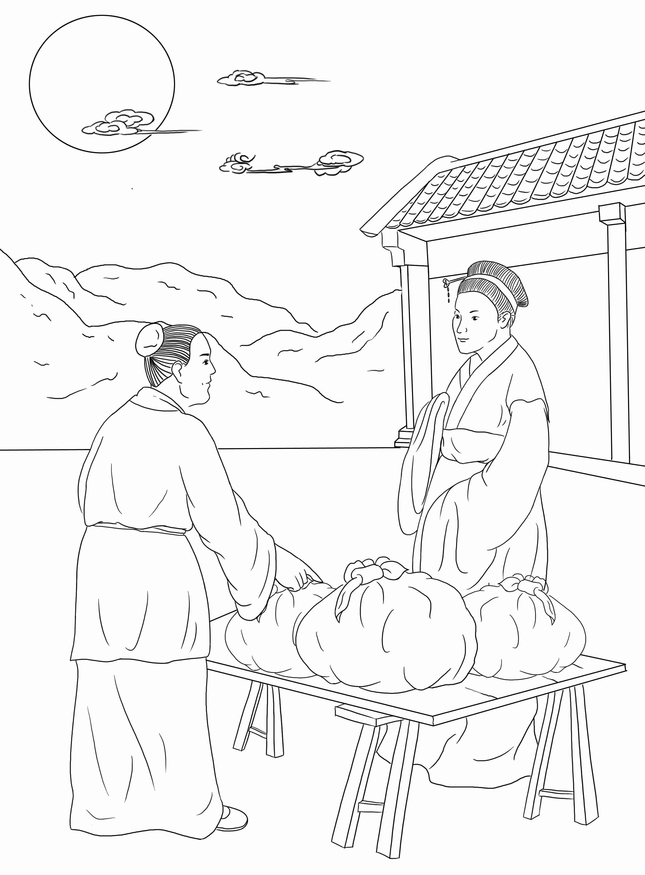 一女买绵子,正在讲价,卖者欲出小恭,踌蹰不决。女云:“你放在此,难道我偷了不成?”其人曰:“既如此,大娘绵(眠同音)在凳上,待我撒出了来。”