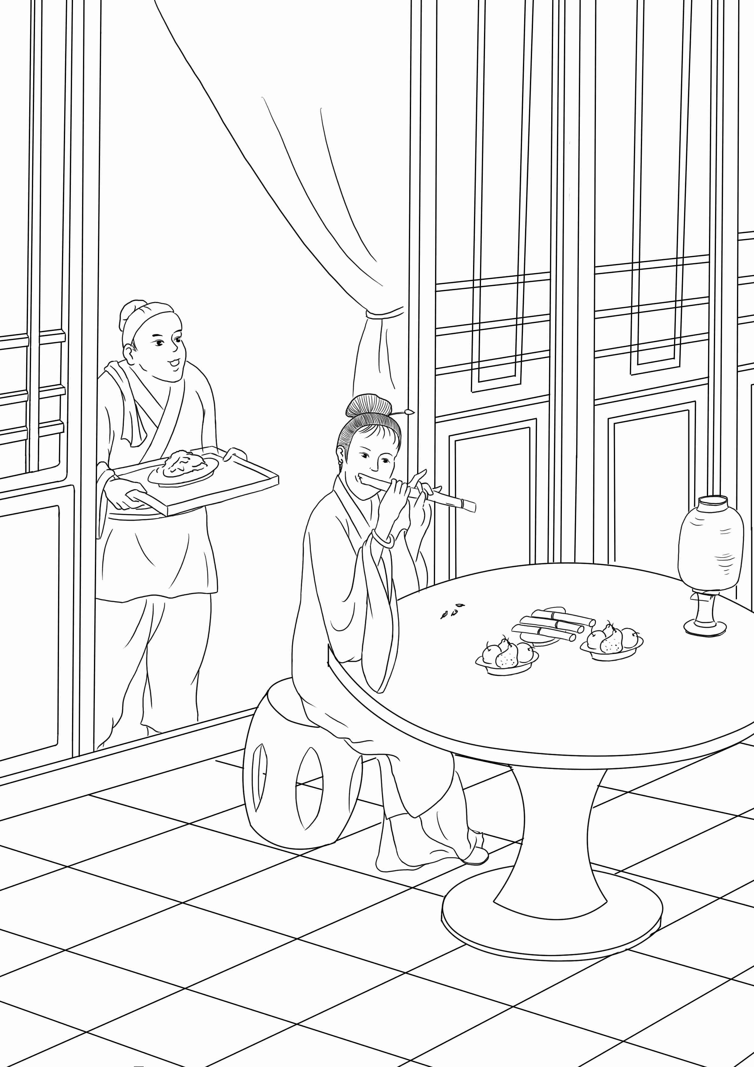 一家人请客,摆出水果。家中女主人拿一截甘蔗放在口中吃,连声叫淡。厨师说:“娘娘想是梢(骚)了。”