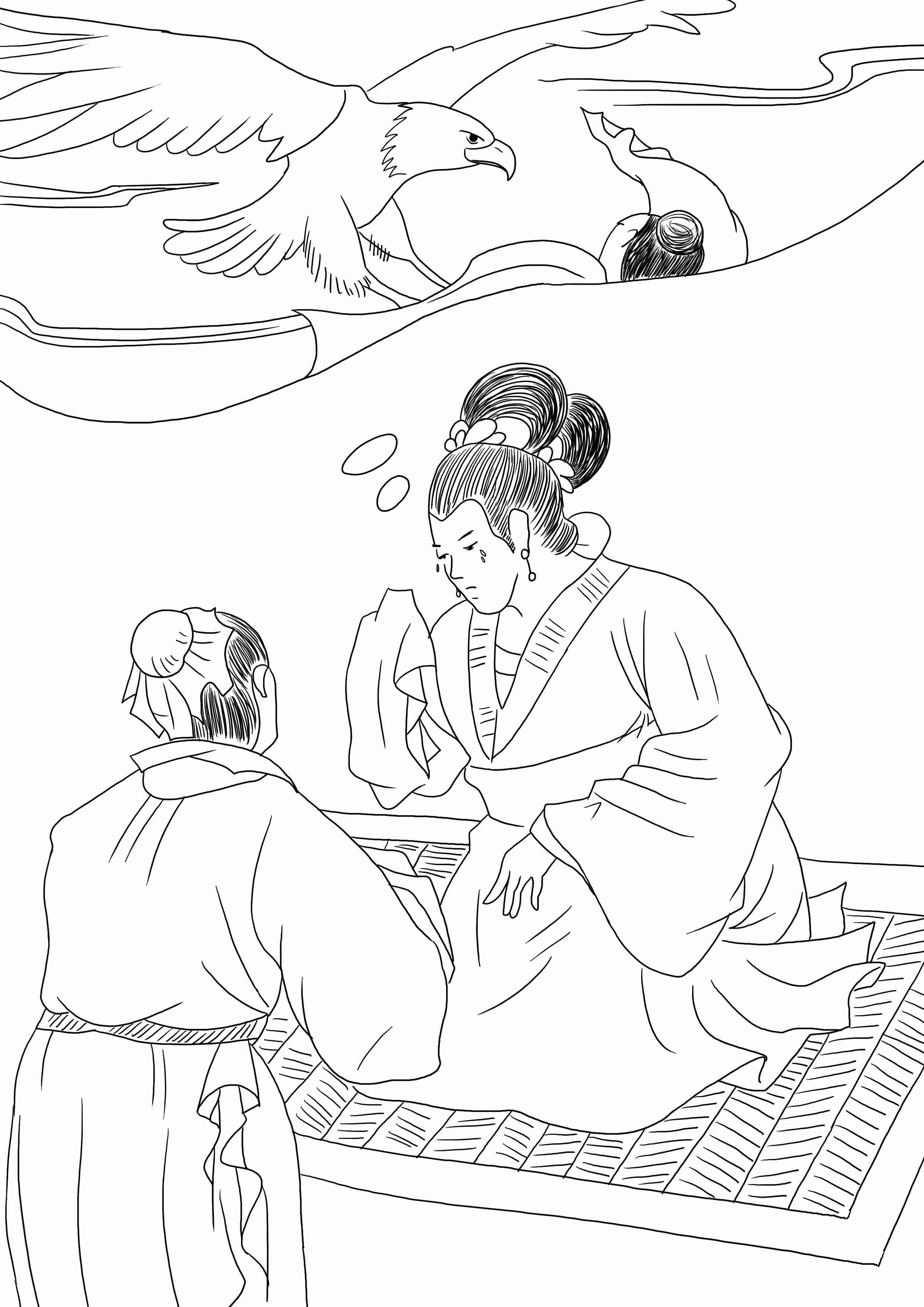 有一个母亲,生了一儿一女,她对女儿尤为喜爱,到嫁了之后,经常思念,对儿子说:“一个人再不要生女儿,等到长大成人就好像被饿老鹰轻轻一爪便就抓去了。”儿子说:“妈妈,他们现在正在那里啄着呢。”