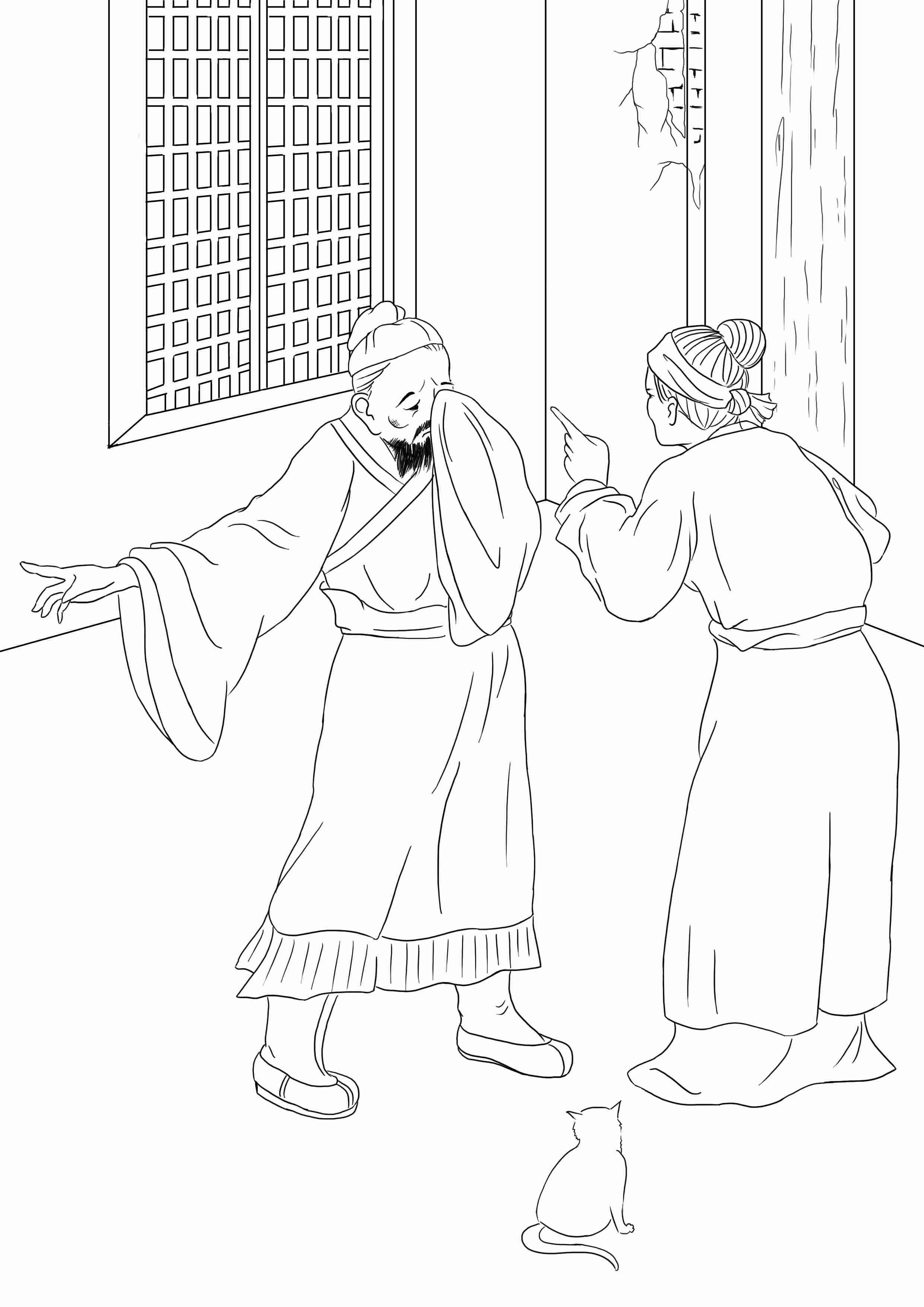 一个人须黄,常在妻前自夸:“黄须无弱汉,一生不受人欺。”一天被人打得鼻青脸肿而回,妻子以前言取笑他。丈夫答:“没想到那人竟是个红胡子。”