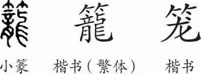 “笼”是形声字。小篆从竹,龍声。隶变后楷书写作“籠”。汉字简化后写作“笼”。