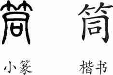 “筒”是形声兼会意字。小篆从竹,同声。隶变后楷书写作“筒”。
