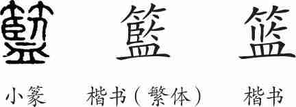 “篮”是形声字。小篆从竹,監声。隶变后楷书写作“籃”。汉字简化后写作“篮”。