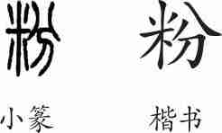 “粉”是形声兼会意字。小篆从米,分声,分兼表分细之意。隶变后楷书写作“粉”。