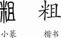 “粗”是形声字。小篆从米,且声。隶变后楷书写作“粗”。