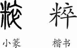 “粹”是形声字。小篆从米,卒声。隶变后楷书写作“粹”。