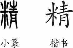 “精”是形声字。小篆从米,青声。隶变后楷书写作“精”。