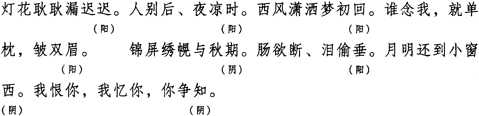 注:本词例押衣部“衣”韵。其中,“回” “眉” “垂”在现代韵中属“飞”韵,而“飞”在古韵中与“衣” 同韵,故“回” “眉” “垂”亦属“衣”韵。