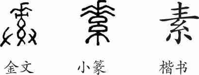 《说文·素部》:“素,白致缯也。从糸,取其泽也。凡素之属皆从素。”(素,白色而又细密的、未加工的丝织品。由糸会意,取其光润下垂的意思。大凡素的部属都从素。)