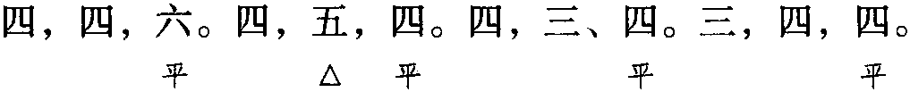 本格双片九十九字。全词同韵,平韵,韵字可阴平、可阳平。凡五字句首字为领字。