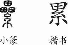 “累”是会意兼形声字。小篆从糸,从畾(雷声连续),会连缀丝并拧成绳索之意。隶变后楷书写作“累”。