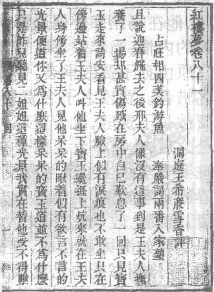 清道光十二年(1832)双清仙馆刊王希廉评本《红楼梦》正文书影
