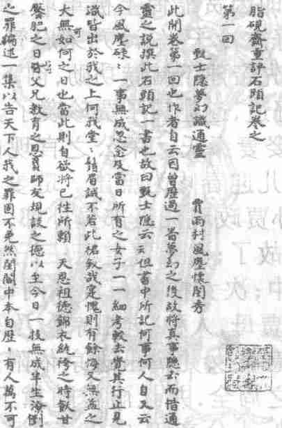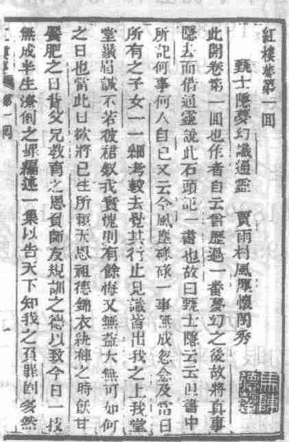 姑苏城里有个乡宦甄士隐,因三岁的爱女英莲被拐,又家遭火灾,遂陷于贫病之中,后受跛足道人《好了歌》点悟,遁入空门。甄士隐曾资助过的穷儒贾雨村,进京中了进士,又升任知府,旋即因贪酷侮上被革职,到了盐政林如海家做西宾。一日,他在扬州郭外偶遇都中好友冷子兴,冷乃荣府管家之婿,向雨村讲述了都中贾府的内情:当年宁、荣二公随先帝建下赫赫功勋,创下家业,至今已将百载。宁公之官原由孙子贾敬承袭,贾敬好道,遂让其子贾珍袭了。珍妻尤氏。贾敬还有一小女名惜春。贾珍之子名贾蓉,娶妻秦氏。荣公之官现由长孙贾赦袭着。赦妻邢氏。贾赦长子贾琏,次子贾琮、女儿迎春均为庶出。琏妻王熙凤,乃都太尉统制县伯王公之后,生有一女。荣公次孙贾政现任工部员外郎,妻王夫人乃熙凤姑母;长子贾珠娶妻李纨生子贾兰后便亡故了;次子贾宝玉;三子贾环为妾赵姨娘所生;长女元春因贤孝才德,早已选入宫中;次女探春与贾环同母。荣公孙女贾敏即林如海之妻。贾赦、政、敏之母史太君贾母,人称“老祖宗”,乃保龄侯尚书令史公之后。