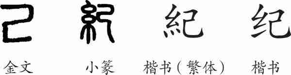 “纪”是会意兼形声字。金文用“己”(编结)表示。小篆另加义符“糸”,从糸从己会意,己兼表声。隶变后楷书写作“紀”。汉字简化后写作“纪”。