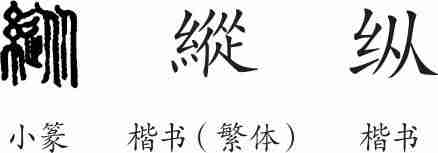 “纵”是会意兼形声字。小篆从糸,从從,從兼表声。隶变后楷书写作“縱”。汉字简化后写作“纵”。