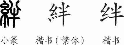 “绊”是形声字。小篆从糸,半声。隶变后楷书写作“絆”。汉字简化后写作“绊”。