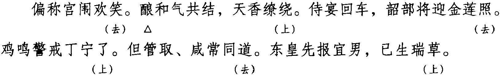 注: 本词例押高部“高” 韵。其中,“昼” 不同声韵,应有误。