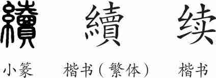 “续”是形声字。小篆从糸,賣声。隶变后楷书写作“續”,汉字简化后写作“续”。