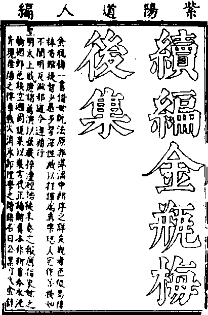清代白话长篇世情小说。一名《续编金瓶梅后集》、《续金瓶梅后集》、《金瓶梅续集》、《玉楼月》,又名《续金瓶后集》、《醒世奇书续编》、《金屋梦》。十二卷六十四回。题“紫阳道人编,湖上钓史评”。紫阳道人即丁耀亢(1599—1669),字西生,号野鹤,自称紫阳道人、木鸡道人,山东诸城人。约成书于清顺治十七年(1660)。