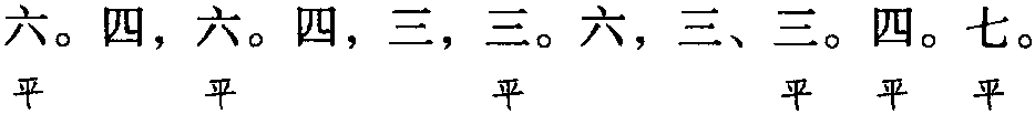本格双片一百零三字。全词同韵,平韵。韵字可阴平、可阳平。另有一百零四字体,且句式不同,见刘辰翁、赵文等词。