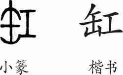 “缸”是形声字。小篆从缶,工声。隶变后楷书写作“缸”。