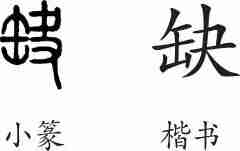 “缺”是形声兼会意字。小篆从(瓦器),夬声,夬兼表破损之意。隶变后楷书写作“缺”。