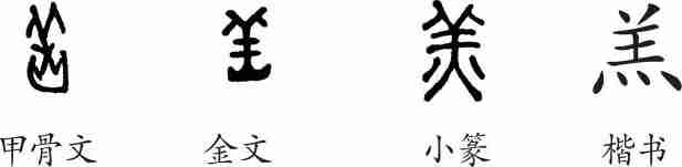 “羔”是会意字。甲骨文上部是羊,下部是火,会用火烤羊之意。金文与甲骨文相似。小篆线条化。隶变后楷书写作“羔”。