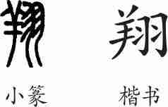 “翔”是形声字。小篆从羽,羊声。隶变后楷书写作“翔”。