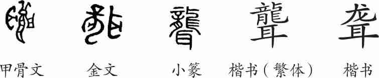 “聋”是形声字。甲骨文从耳,龍声。金文与甲骨文相似,只是左边改为“龍”,右边仍从耳。隶变后楷书写作“聾”。汉字简化后写作“聋”。