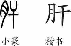 “肝”是形声字。小篆从肉(月),干声。隶变后楷书写作“肝”。