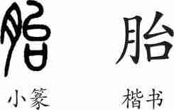 《说文·肉部》:“胎,妇孕三月也。从肉,台声。”(胎,妇女怀孕三个月。从肉,台声。)