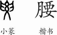 “腰”是会意兼形声字。小篆本写作“要”,由于“要”后为引申义所专用,便另加义符“肉”(月),写作“腰”。