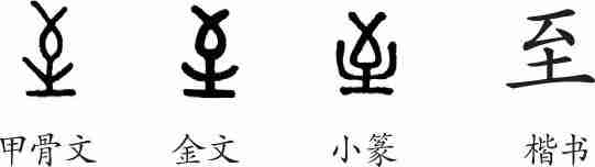 《说文·至部》:“至,鸟飞从高下至地也。从一,一犹地也。象形。不,上去;而至,下来也。凡至之属皆从至。”(至,鸟从高处飞下落到地面上。从一,“一”好比是地面。“