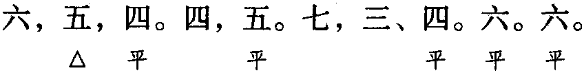 本格双片九十九字。全词同韵,平韵,韵字可阴平、可阳平。下片第二句首字为领字。